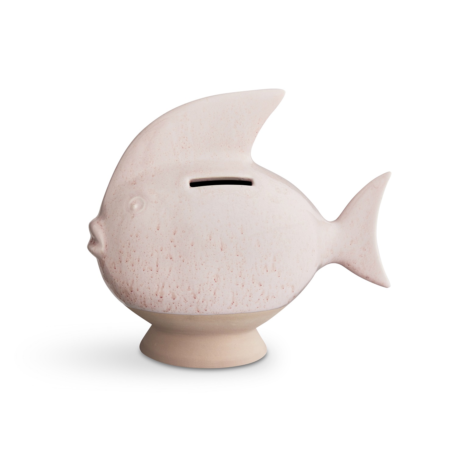 Kähler on tanskalainen keramiikkatalo joka on toiminut vuodesta 1839. Alunperin kaikki valmistettiin Tanskassa mutta nyt tuontantoa on mm Portugalissa. Kala- säästölipas on saanut innoituksensa 1930- luvulla suunnitelluista Kähler- säästöpossuista. Laita odottamaan eteisen pöydälle ja anna kalalle kaikki kolikot taskunpohjalta, säästät ihan huomaamattasi ( tai ainakin on bussirahaa kätevästi jos taskut ovatkin tyhjät).
