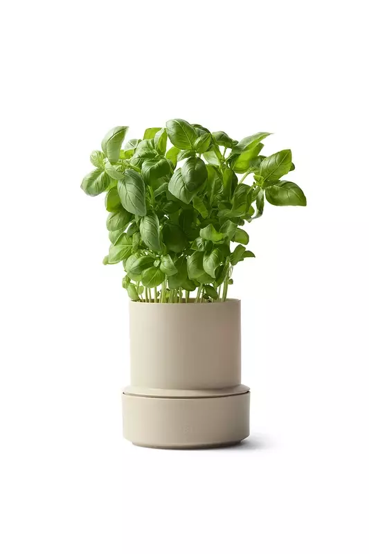 Billund itsekasteleva ruukku- täytä vain pohja vedellä ja aseta kapillaarimatto paikoilleen. Huolehdi että säiliössä on vettä ja huolellista kastelua vaativat yrtit, kuten basilika ja minttu voivat hyvin. Lisäksi säästyt nuupahtaneiden yrttien tuomalta pahalta mieleltä kun on raikkaita yrttejä aina valmiina käyttöön.Ruukku on valmistettu 75% kierrätysmuovista ja pakattu siistiin pahvilaatikkoon jossa on myös käyttöohjeet. Korkeus 14cm, halkaisija 12 cm.