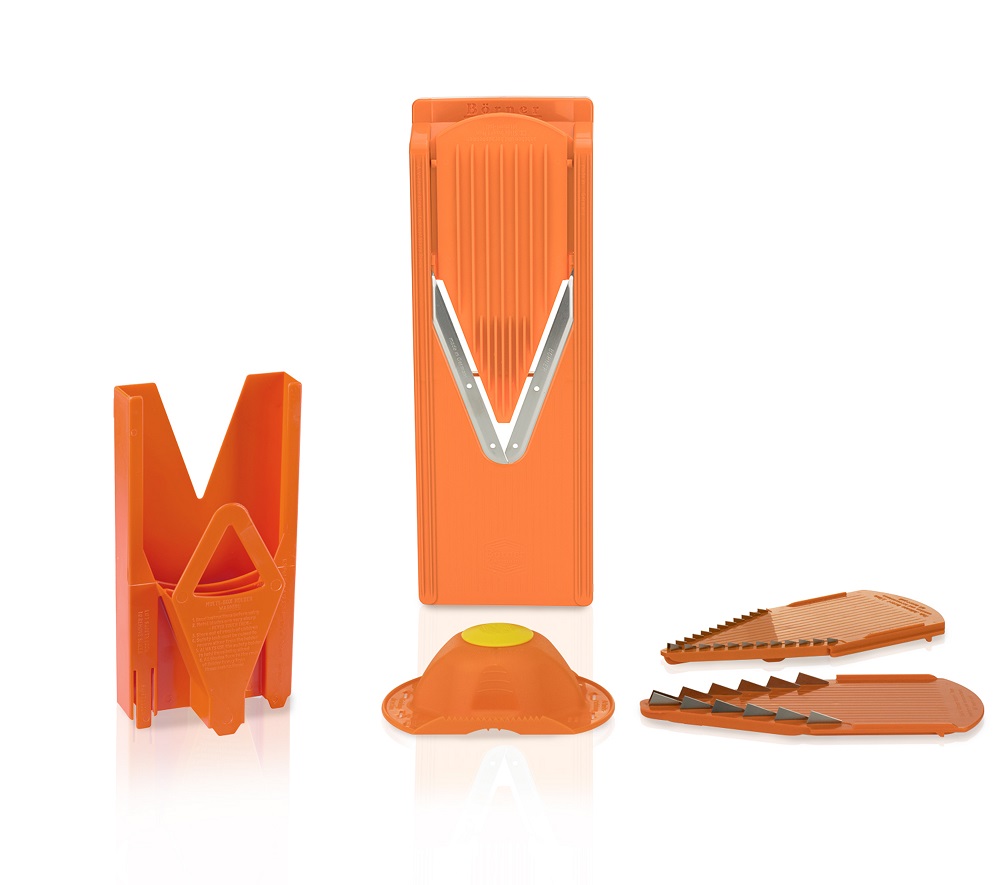 Tämä mandoliini on monelle tuttu jo mummolasta. Kestävä ja laadukas V3 mandoliini valmistetaan Saksassa ja sillä saat vihenneksista, juureksista ja hedelmistä sekä ohuita että paksuja viipaleita. terää vaihtamalla myös suikaloit ja teet jopa kuutioita.Mukana tulee käsisuoja/turvapidike ja sitä on syytä käyttää koska terät ovat teräviä- kuten pitääkin. Säilytä kaikki osat kätevästi mukana tulevassa telineessä. Mandoliini ja kaikki osat kannattaa huuhtoa heti käytön jälkeen ja tarpeen vaatiessa pestä astianpesuaineella ja pehmeällä sienellä tai harjalla, astianpesukoneessa terät tylstyvät nopeammin.