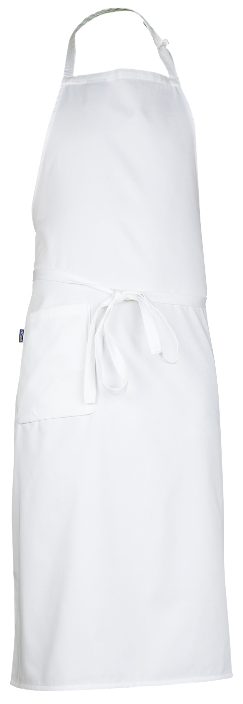 Esiliina vaatteidesi suojaksin säädettävä niskalenkki, tasku oikealla.