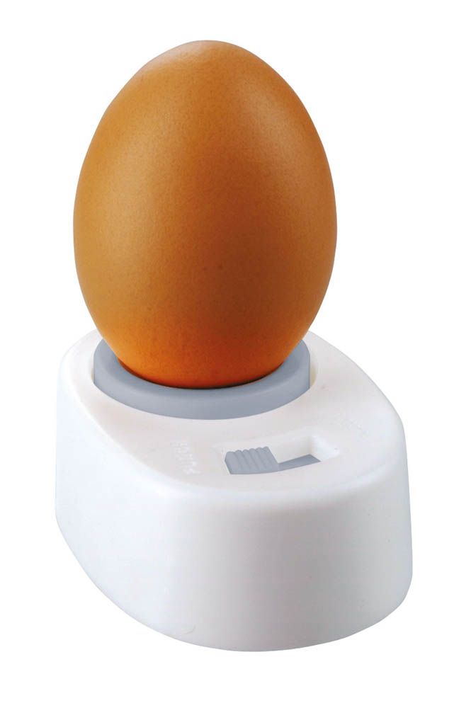 Kananmunan rei'ittäminen kannattaa, kun haluaa keittää kananmunia ja vähentää rikkoutumisen riskiä. Aseta kananmuna alustalle ja siirrä työkalussa oleva vipu "punch"-asentoon. Paina kananmunaa varovasti alaspäin, jolloin neula pääsee läpäisemään kananmunan kuoren ja tekemään siihen pienen reiän. Käännä sitten vipu "lock"-asentoon säilytystä varten, jotta piikki pysyy piilossa ja sormet ehjinä. Kananmunan rei'ittäminen ennen keittämistä vähentää huomattavasti kesken keiton rikkoutuneiden munien määrää. Jos haluat keittää munia eri kovuusasteisiin, suosittelemme käyttämään tätä työkalua, joka kertoo kananmunien kypsyysasteen.