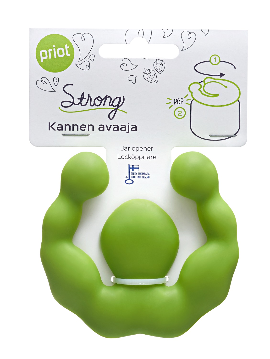 Silikoninen Suomessa valmistettu kannenavaaja Strong on pirteän vihreä ja kätevä keittiössä. Kannenavaajalla saat helpommin kiinni purkin kannesta ja näin avaaminen sujuu helposti.