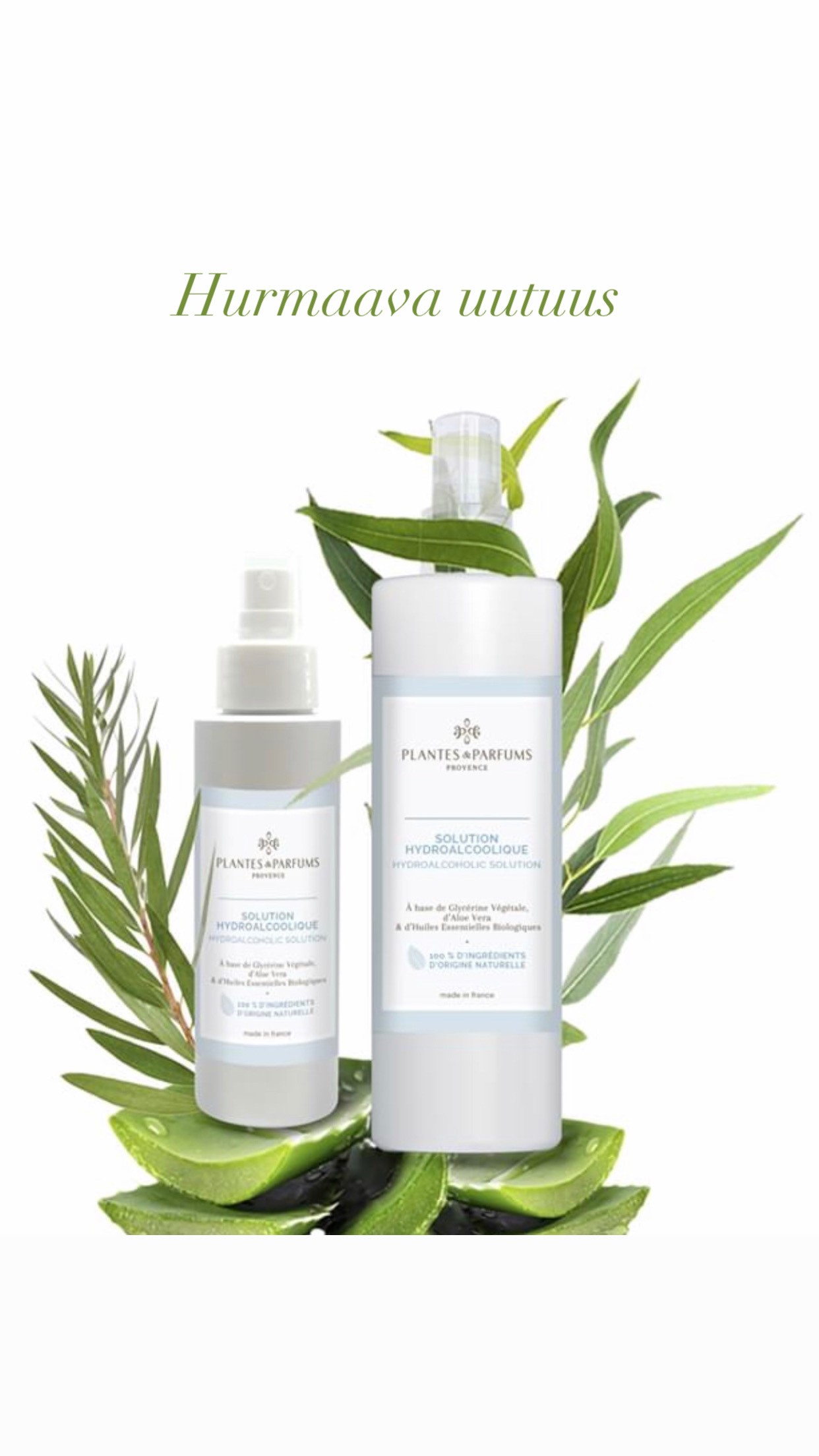 Desinfiointisuihke / Desinfiointiaine käsille ja pinnoille, valmistettu Ranskassa. Ihanan tuoksuinen käsidesi sisältää 100 % luonnollisia ainesosia ja jättää kädet raikkaiksi ja ihanan tuoksuisiksi. Desinfiointisuihke tuhoaa bakteeraita ja viruksia. Desinfiointisuihke sisältää ihoa kosteuttavaa aloe vera ja glyceriinia sekä ihania eteerisiä öljyjä, 80% tuotteesta on tehokasta etanolia. Verbenan ja eucalyptuksen tuoksuinen. 250ml.