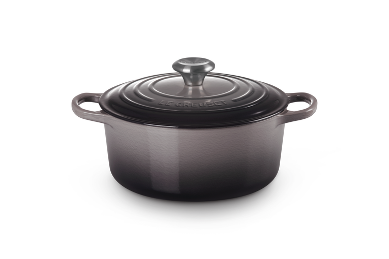 Flint Oyster on elegantti väri valurautapadalle. Tällä padalla haudutat parhaimmat ruoat, leivot rapeimmat pataleivät ja valmistat perheen uudet perinnereseptit. 4,2 litran koko taipuu kuudenkin hengen ruokatarpeiden valmistamiseen. Signature-malliston padassa on entistä kestävämpi emalointi, tiiviimpi kansi ja suuremmat kahvat sekä ergonomisempi teräsnuppi myös patakintailla käsittelyyn.