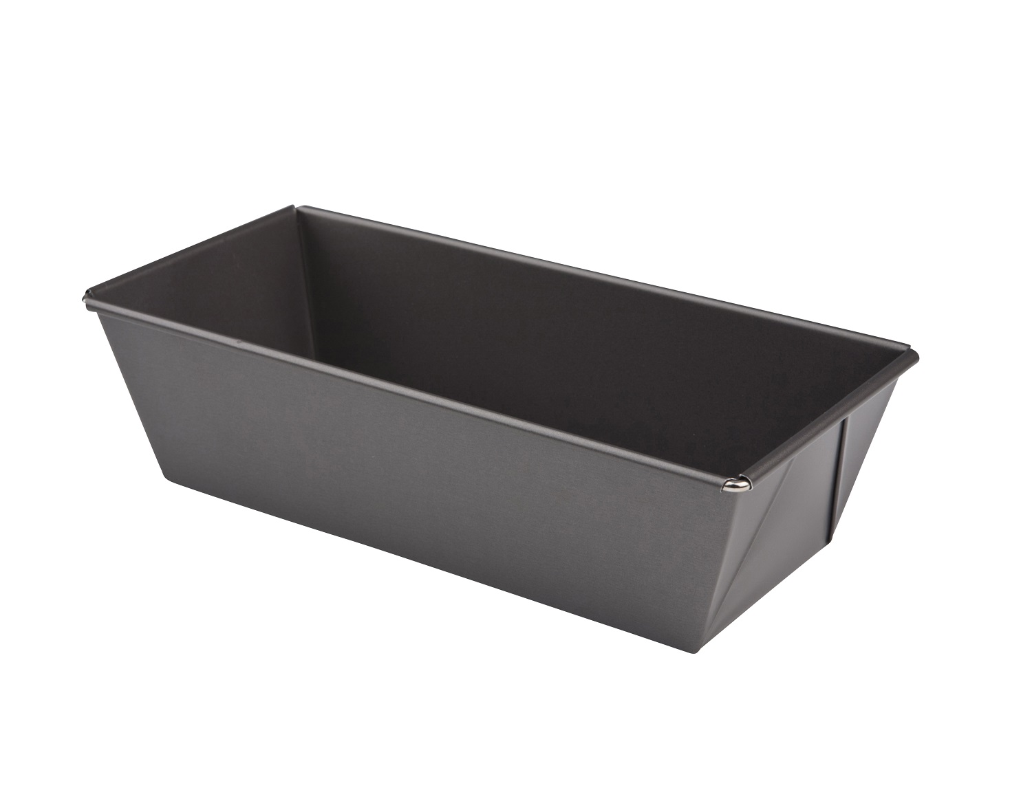 Leipävuoka jonka tilavuus on 1,3 litraa ja pituus 25 cm. Muista voidella ja pese käsin ja kuivaa.