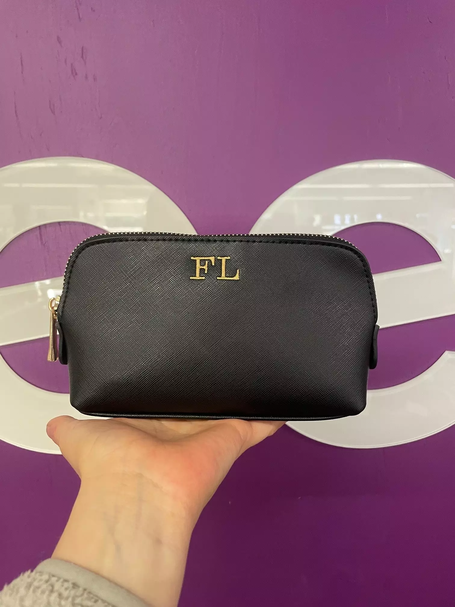 Meikkipussi M nimikirjaimilla
