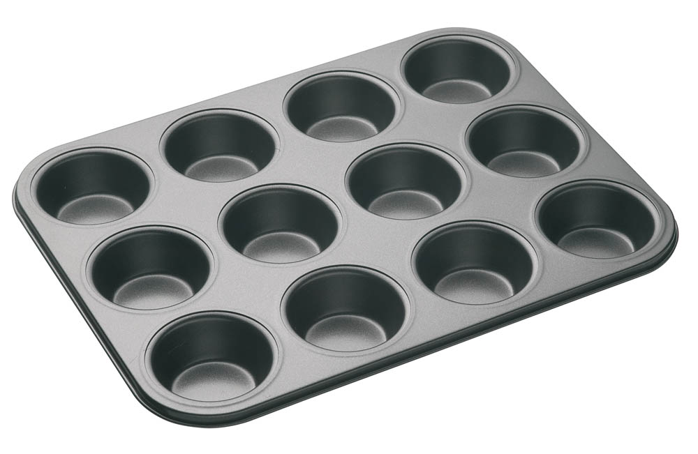 Muffinssien leivontaan oiva apuväline. Paperinen vuoka pysyy hyvin kuosissaan kun laitat ne paistonajaksi tähän. Pellissä on 12 aukkoa 7cm x 2,5 cm ja koko pelti on 35 cm x 27 cm.