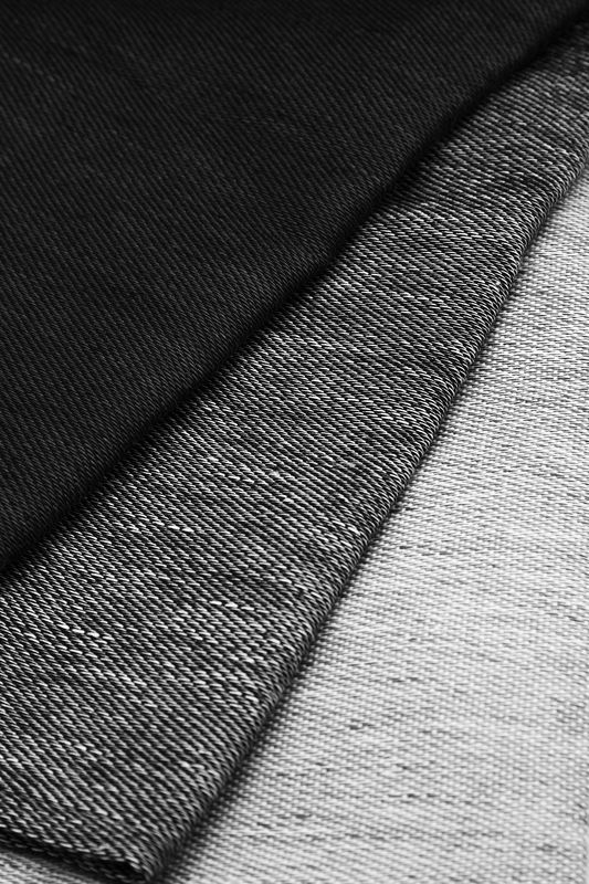 Vaalean harmaa pefletti, 70 % pellavaa 30 % puuvillaa, suunniteltu Suomessa.