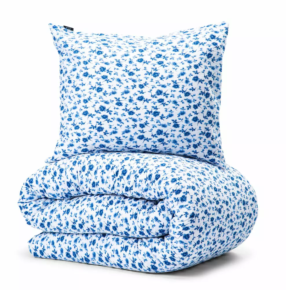 Maalaisromantiikkaa, mökkielämää ja kesäyön unelmia parhaimmillaan. Ihastuttava pussilakanasetti, joka tuntuu samaan aikaan vanhanaikaiselta sekä modernilta. Pienet siniset ruusut koristavat pussilakanaa ja tyynyä kauttaaltaan. Materiaalina on käytetty kreppipuuvillaa, joka on ohutta, aaltoilevaa ja myötäilevää kangasta. Kreppipuuvillaiset lakanat tuntuvat usein viileämmiltä iholla niiden keveyden ja kankaan luomien ilmataskujen ansiosta, joten ne ovat omiaan kesän lämpimiin öihin. Kreppipuuvilla on helppohoitoinen materiaali, joka ei kaipaa silitystä. 100% kreppipuuvillaa.