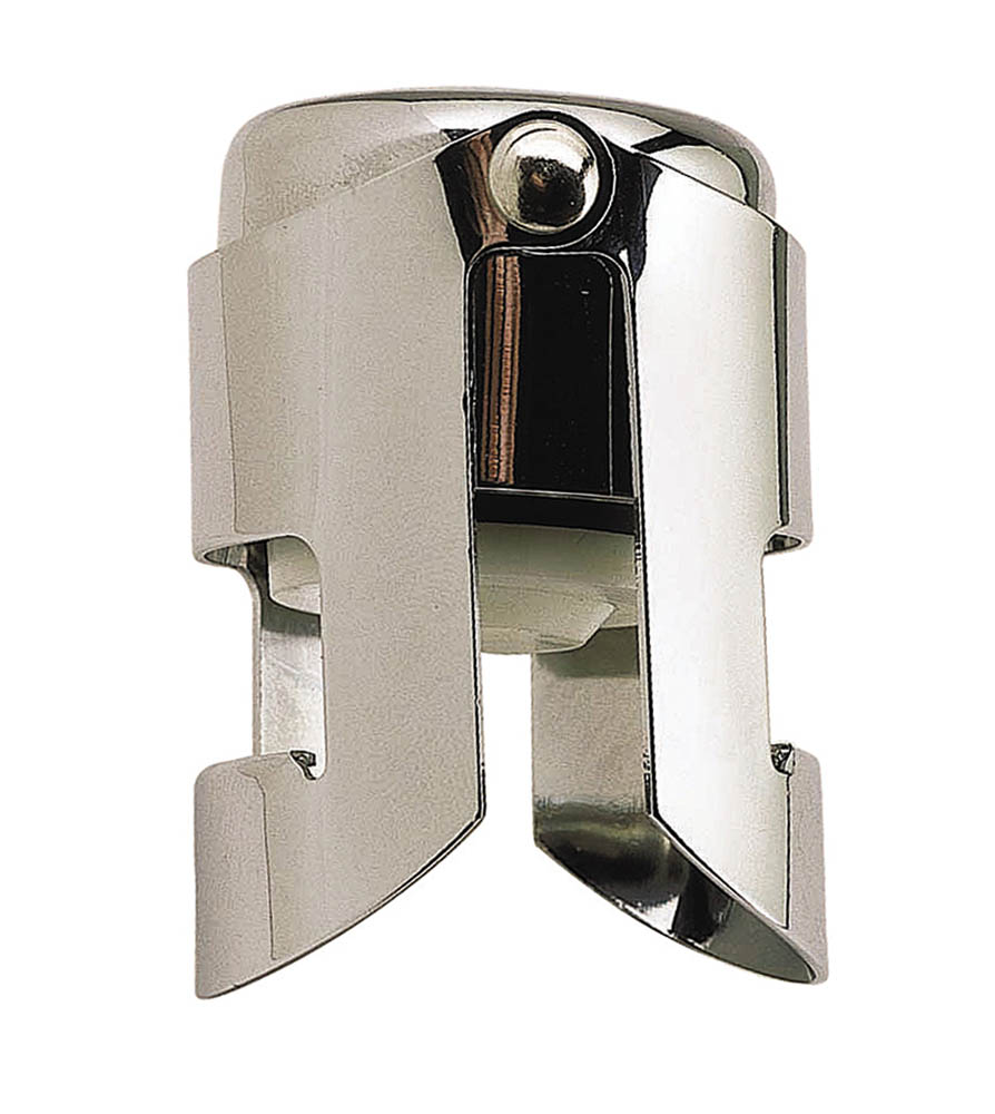 Teräksinen korkki kuohuviinipulloille. Lukittuu paikalleen pullon kaulassa olevan kauluksen alle, painat korkkia ensin suoraan alas ja lasket sitten "siivekkeet" alas kauluksen alle. Nyt voi avata pullon vain muutamaa lasillista varten!
