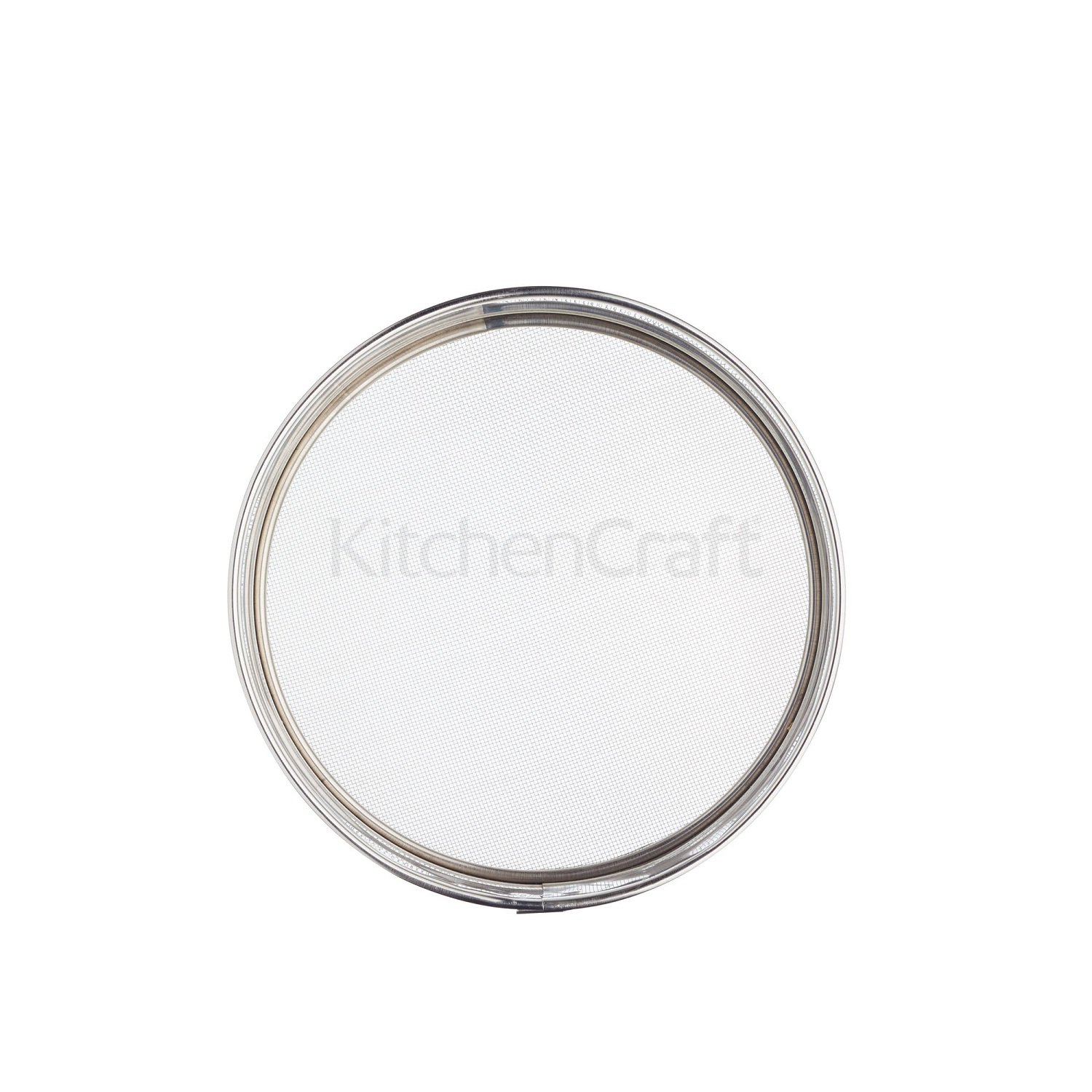 Rumpusiivilä jolla sirottelet jauhot, sokerit ja siivilöit soseet. Reunassa on ripustinlenkki.