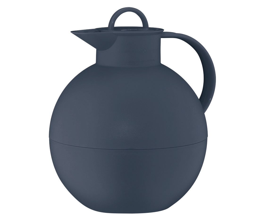 Tummansininen sympaattinen termoskannu, jossa pysyy juoma kylmänä jopa vuorokauden ja kuumana noin 12 tuntia. Ihana lisä aamiaiskattaukseen tai iltateen tarjoiluun. Huuhtele kannu ensin kylmällä tai kuumalla, jotta haluttu lämpötila pysyy pidempään oikeana. Tilavuus 0,94 litraa, käsinpesu.